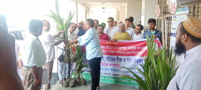 তালতলী প্রতিনিধি: কৃষি প্রণোদনা কর্মসূচির আওতায় নারিকেলের আবাদ ও উৎপাদন বৃদ্ধি লক্ষ্যে বরগুনার তালতলীতে কৃষকদের মাঝে বিনামূল্যে নারিকেল চারা বিতরণ করা হয়েছে। ২০২৪-২৫ অর্থবছরের খরিপ-২ মৌসুম উপলক্ষে সোমবার (২৫ জুন) তালতলী উপজেলা পরিষদ চত্বরে এই চারা বিতরণ কার্যক্রম অনুষ্ঠিত হয়।