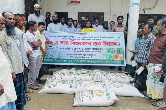নাহিদ বিন রফিক (বরিশাল): বরিশাল মেট্টোপলিটন এলাকার কৃষকদের মাঝে রবি ফসলের প্রণোদনা বিতরণ করা হয়েছে। বৃহস্পতিবার (১৬ অক্টোবর) নগরীর খামারবাড়ির চত্বরে মেট্টোপলিটন কৃষি অফিসের উদ্যোগে প্রণোদনা উদ্বোধন করেন কৃষি সম্প্রসারণ অধিদপ্তরের (ডিএই) অতিরিক্ত পরিচালক ড. মোহাম্মদ নজরুল ইসলাম শিকদার। অনুষ্ঠানে ডিএই’র উপপরিচালক মোসাম্মৎ মরিয়ম, এসএসিপি রেইন্স প্রকল্পের আঞ্চলিক প্রকল্প অফিসার মো. রিফাত সিকদার, ডিএইর অতিরিক্ত উপপরিচালক (শস্য) মো. মুসা ইবনে সাঈদ, অতিরিক্ত উপপরিচালক (উদ্যান) মো. শহিদুল ইসলাম, অতিরিক্ত উপপরিচালক (উদ্ভিদ সংরক্ষণ) মো. মামুনুর রহমান, তেলজাতীয় ফসলের উৎপাদন বৃদ্ধি প্রকল্পের মনিটরিং অফিসার মো. আলী আজিম শরীফ, আঞ্চলিক কৃষি তথ্য অফিসার শেখ হাবিবুর রহমান, মেট্টোপলিটন কৃষি অফিসার জয়ন্তি এদবর, কৃষি সম্প্রসারণ অফিসার সৈয়দা ফারহিন তামান্না, কৃষি তথ্য সার্ভিসের কর্মকর্তা এস. এম. নাহিদ বিন রফিক অন্যান্যের মধ্যে উপস্থিত ছিলেন।
