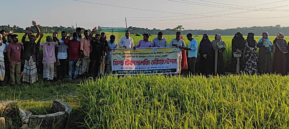 মতবিনিময় শেষে হাতে-কলমে প্রশিক্ষণের অংশ হিসেবে পার্টনার ফিল্ড স্কুল সংলগ্ন পার্টনার প্রোগ্রামের অধীন প্রযুক্তি নির্ভর আধুনিক ব্রি ধান১০৩ জাতের ধানের ২ একর প্রদর্শনীর উপর ৫০ জন কৃষক নিয়ে ফিল্ড অরিয়েন্টেশন অনুষ্ঠিত হয়।