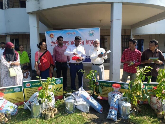 প্রশিক্ষণ শেষে অংশগ্রহণকারী কৃষকদের মাঝে পুষ্টি বাগান স্থাপনের জন্য প্রয়োজনীয় উপকরণ — বীজ, চারা, ঝাঝড়ি, গার্ডেন নেট, জৈব ও রাসায়নিক সার ও বীজ সংরক্ষণ পাত্র — বিতরণ করা হয়।