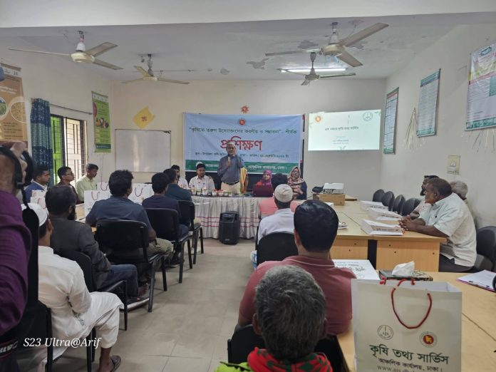 প্রশিক্ষণ উদ্বোধন করেন কৃষি তথ্য সার্ভিসের পরিচালক মোঃ মসীহুর রহমান। তিনি তার বক্তব্যে বলেন বর্তমান সময়ে কৃষি খাত বহুমাত্রিক সম্ভাবনার দ্বার উন্মোচন করেছে। ফসল উৎপাদনের পাশাপাশি কৃষি পণ্য প্রক্রিয়াজাতকরণ, সংরক্ষণ ও বাজারজাতকরণে দক্ষতা অর্জনের মাধ্যমে নতুন নতুন উদ্যোক্তা সৃষ্টি হচ্ছে। তথ্য প্রযুক্তির ব্যবহার , জলবায়ু সহনশীল চাষাবাদ এবং নিরাপদ খাদ্য উৎপাদনের প্রতি গুরুত্বারোপ করে তিনি তরুণদের উদ্ভাবণী উদ্যোগ গ্রহনের আহবান জানান। প্রশিক্ষণের গুরুত্ব তুলে ধরে তিনি বলেন সঠিক জ্ঞান ও দক্ষতা অর্জন ছাড়া টেকসই সাফল্য সম্ভব না। এ ধরণের প্রশিক্ষণ তরুণদের সক্ষমতা বৃদ্ধি, পরিকল্পিত বিনিয়োগ এবং ঝুঁকি ব্যবস্থাপনায় সহায়ক ভুমিকা রাখবে। এসময় তিনি কৃষকদের সঠিক তথ্য প্রাপ্তির জন্য কৃষি তথ্য সার্ভিসের বিভিন্ন ই- উদ্যোগ সমূহ সম্পর্কে অবগত করেন এবং কৃষি কল সেন্টার নাম্বার ১৬১২৩ এ কল করে কৃষি বিষয়ক যে কোন পরামর্শ নিতে উদ্যোক্তাদের আহ্বান জানান। কৃষি সম্প্রসারণ অধিদপ্তর ,ধামরাই এর সার্বিক সহযোগিতায় আয়োজিত উক্ত প্রশিক্ষণে প্রশিক্ষক হিসেবে আরও উপস্থিত ছিলেন ডঃ সৈয়দ মোহাম্মদ মহসীন, সহযোগী অধ্যাপক, উদ্ভিদ রোগতত্ব বিভাগ, শেরেবাংলা কৃষি বিশ্ববিদ্যালয়, মোছাঃ শামীমা খাতুন, উপজেলা কৃষি অফিসার (এল আর), গ্যাপ ইউনিট, সরেজমিন উইং, খামারবাড়ি, ঢাকা, মোঃ আরিফুর রহমান , উপজেলা কৃষি অফিসার ,ধামরাই, ঢাকা। এসময় কৃষকদের খামারি এপস এর ব্যবহার , বালাইনাশক পরিচিতি ও রোগ দমন ব্যবস্থাপনা, নিরাপদ সবজি উৎপাদনে গ্যাপ বাস্তবায়নের কৌশল ও কৃষি পণ্য রপ্তানি প্রক্রিয়া ও ডকুমেন্টেশন বিষয়ক প্রশিক্ষণ প্রদান করা হয়।