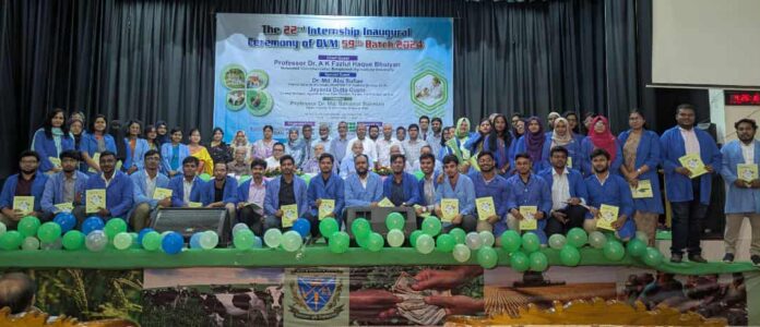 বাংলাদেশ কৃষি বিশ্ববিদ্যালয়ে (বাকৃবি) ভেটেরিনারি অনুষদের ৫৯তম ব্যাচের শিক্ষার্থীদের ইন্টার্নশিপের উদ্বোধনী অনুষ্ঠিত হয়েছে। এবছর ব্যাচটির মোট ১৯৩ জন শিক্ষার্থীর মধ্যে ৫০ জন শিক্ষার্থী বিশ্বের মোট ৬টি দেশে ইন্টার্নশিপের সুযোগ পেয়েছে।