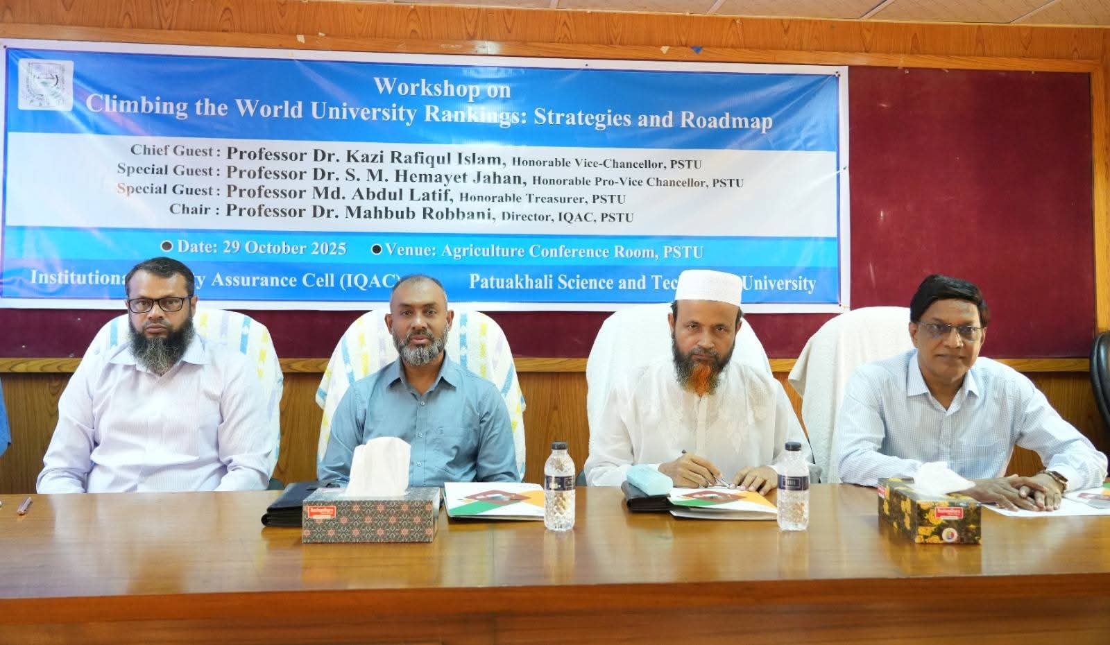 পবিপ্রবি প্রতিনিধি: পটুয়াখালী বিজ্ঞান ও প্রযুক্তি বিশ্ববিদ্যালয়ে (পবিপ্রবি) “Climbing the World University Rankings: Strategies and Roadmap” শীর্ষক দিনব্যাপী এক কর্মশালা অনুষ্ঠিত হয়েছে। বুধবার (২৯ অক্টোবর) সকাল ৯টায় বিশ্ববিদ্যালয়ের কৃষি অনুষদের সেমিনার কক্ষে এই কর্মশালার আয়োজন করে বিশ্ববিদ্যালয়ের Institutional Quality Assurance Cell (IQAC)।
