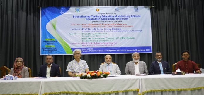 বাংলাদেশ কৃষি বিশ্ববিদ্যালয়ে (বাকৃবি) ভেটেরিনারি বিজ্ঞানে তৃতীয় স্তরের শিক্ষা শক্তিশালীকরণ বিষয়ক উদ্বোধনী কর্মশালা অনুষ্ঠিত হয়েছে। হায়ার এডুকেশন এক্সিলারেশন অ্যান্ড ট্রান্সফরমেশন (হিট) – একাডেমিক ট্রান্সফরমেশন ফান্ড (এটিএফ) প্রকল্পটিতে অর্থায়ন করেছে।